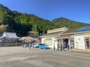 鮒田区の一時避難場所は、高台にあります。訓練開始の町内放送を合図に、自宅から避難場所までの所要時間をはかる他、炊き出し訓練や避難場所の法面伐採作業などを行いました。